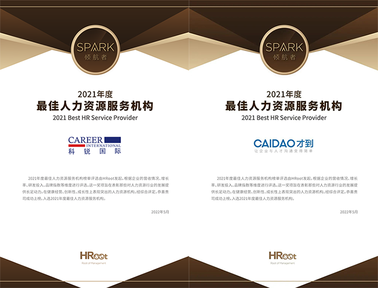 近期,HRoot重磅发布“2021年度人力资源服务组织榜单”,k8凯发国际国际凭借强大的综合实力和科技创新能力获评“年度最佳人力资源服务组织”。